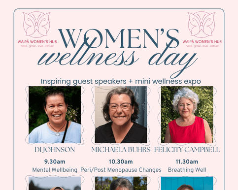 Women's Wellness Day!9.30am - 4pm - Saturday 15 November - We are hosting our Inaugural Women's Wellness Day. We have six FABulous speakers on Women's Health as well as 15 Exhibitors, ALL focused on YOUR health & wellbeing. $5 for member's or $10 for friends.
